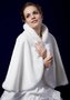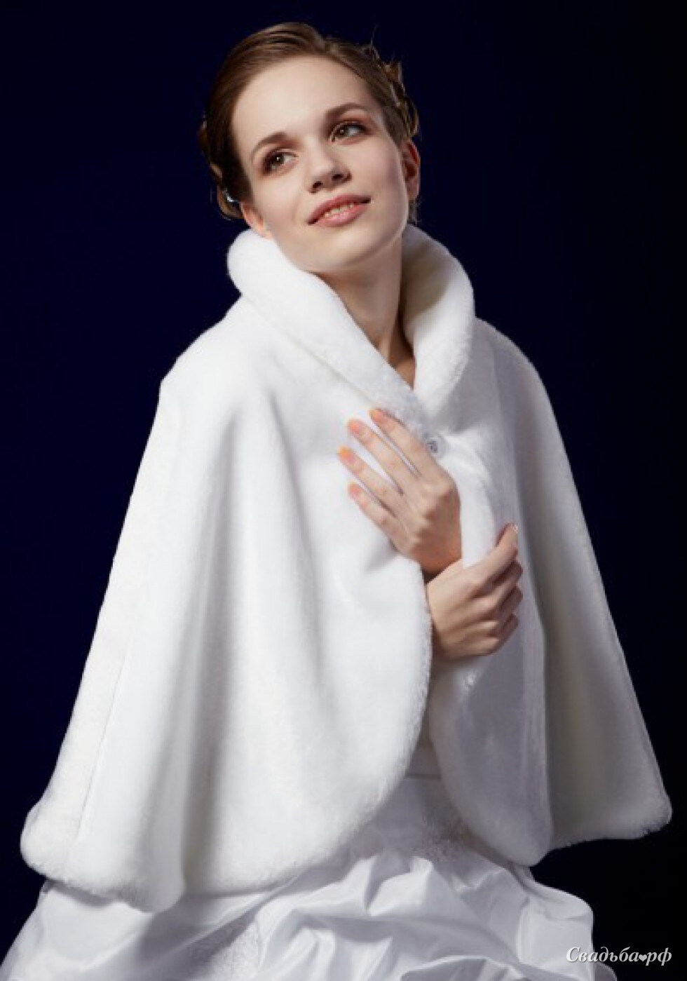 Шикарная накидка из искусственного меха норки. Воротник стоечка. Застегивается на одну пуговку. В такой накидке свободно рукам и в тоже время она согреет в холодную погоду.