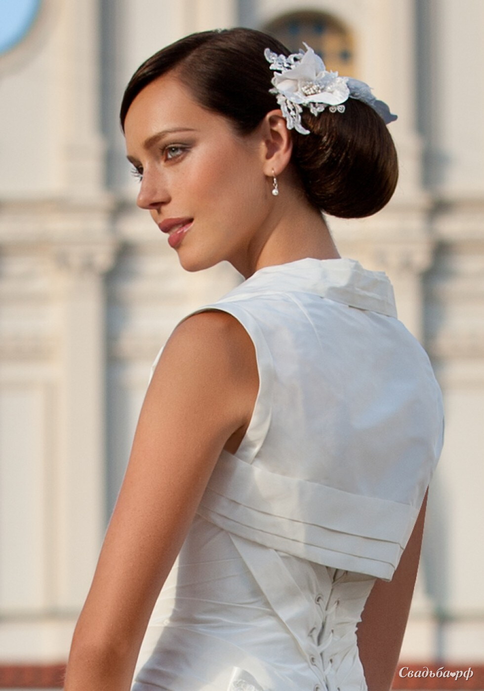 Нежный цветок из нескольких соцветий, выполненный из шелковой тафты и декорированный тонким кружевом. Может быть выполнен в нескольких оттенках.