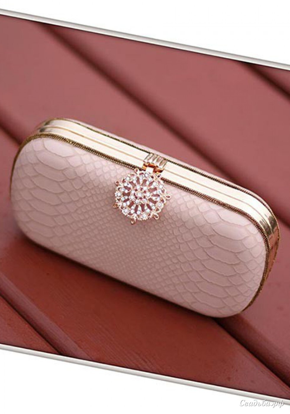 Клатч на жесткой основе. Верх экокожа под рептилию, по краю золотой шнур . Внутри хлопок американский. замочек золотой украшен стразами.