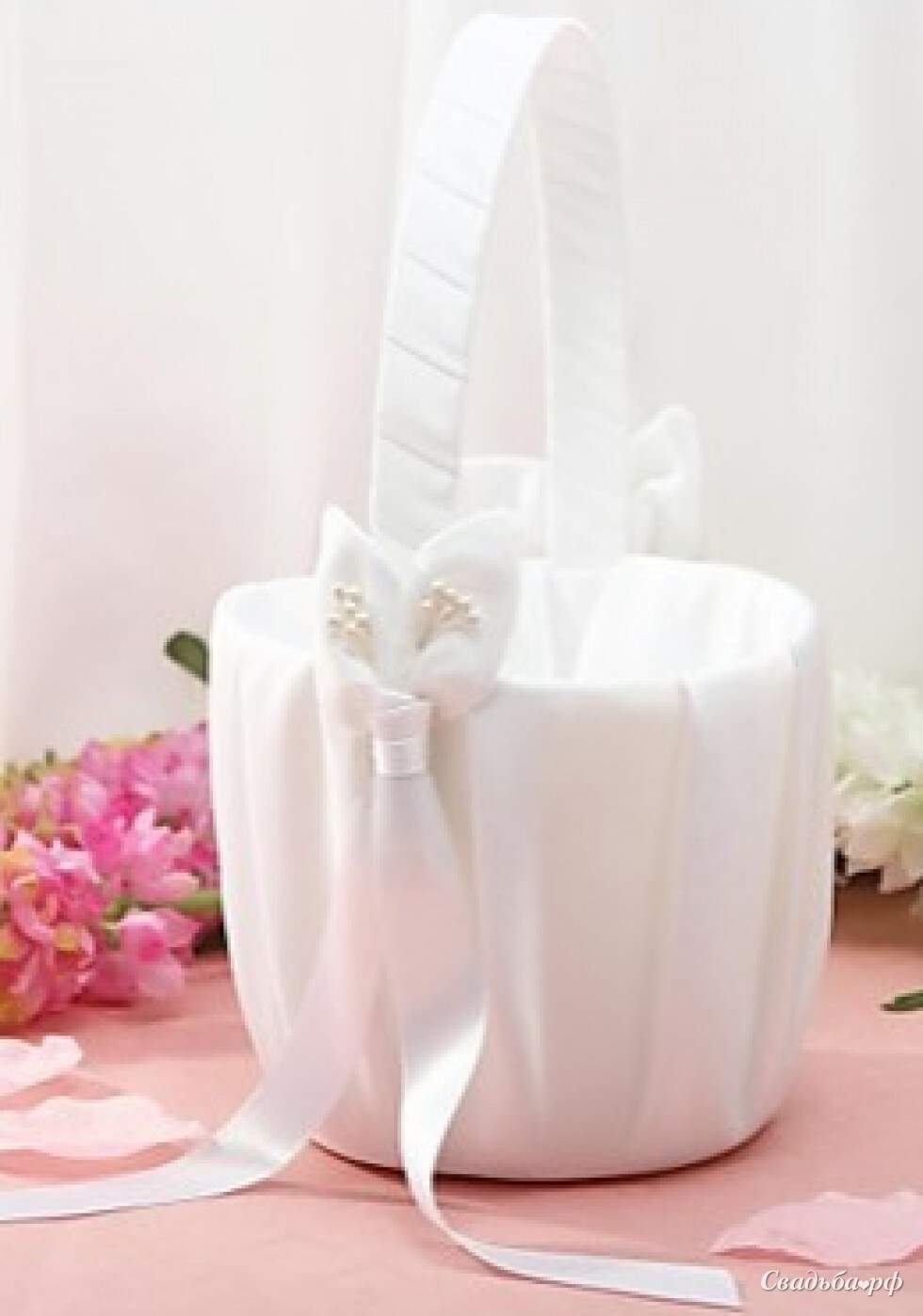 Очаровательная корзинка для цветов, лепестков, конфетти. Если на Вашей свадебной церемонии присутствуют дети, доверьте её маленькой девочке - и она, и вы, и гости будете в восторге!