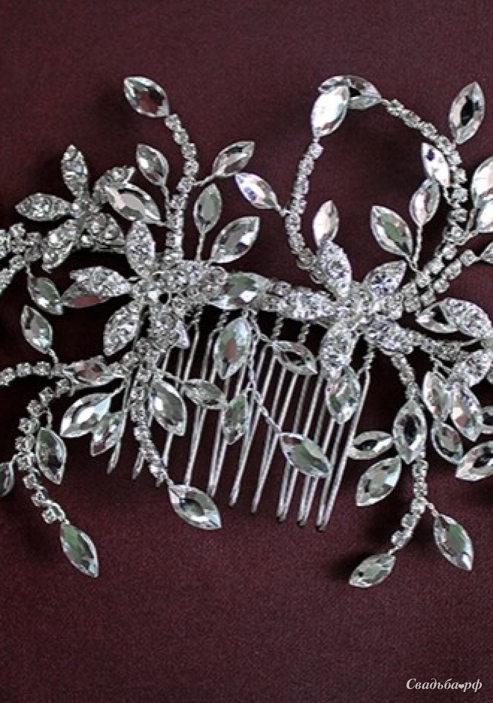 Эффектное украшение для волос. Выполнено из хрусталя. За счет мягкого метала можно формировать по прическе.