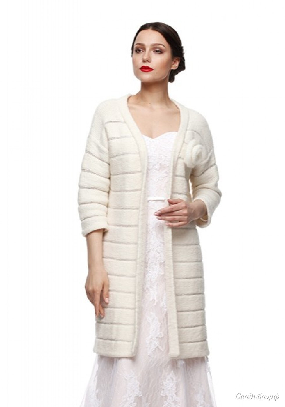 Изысканное пальто с актуальной техникой чередования плотной и тонкой пряжи.Брошь «цветок» можно отстегнуть.