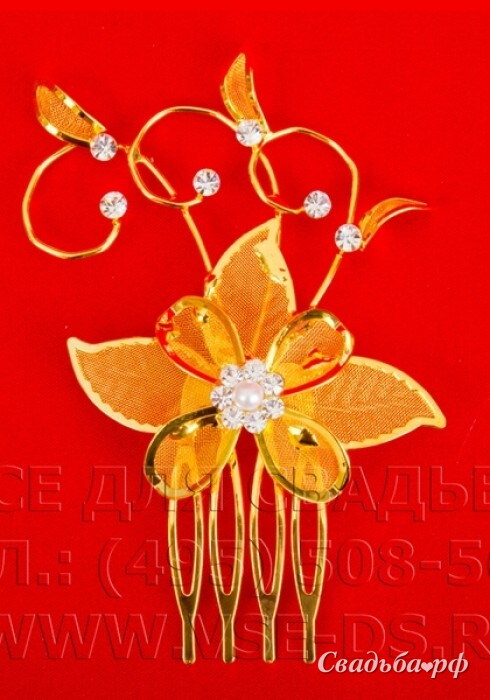 Арт.116-050 Украшения для невесты: Гребень цветок малый со стразами. Цвет: золотой.