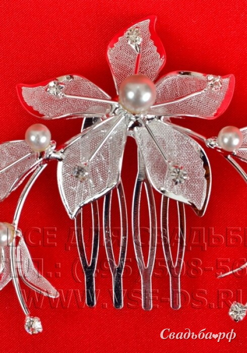 Арт.116-050 Украшения для невесты: Гребень цветок малый со стразами