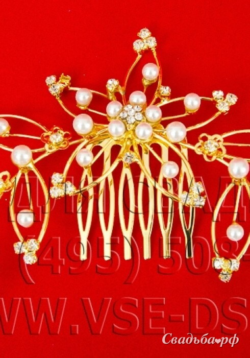 Арт.116-102 Украшения для невесты Гребень «Стразы и жемчуг». Цвет: золотой
