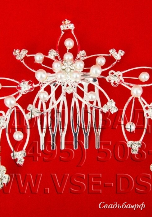 Арт.116-102 Украшения для невесты Гребень «Стразы и жемчуг». Цвет: серебряный
