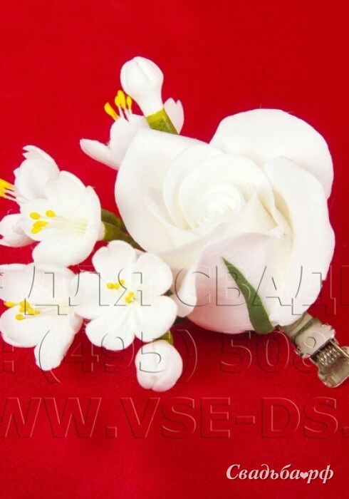 Арт.116-111 Украшение из полимерной глины, Заколка Яблоневый цвет.