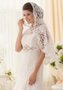 Накидка поражает красотой исполнения и качеством материалов, а сложная проработка деталей никого не оставит равнодушным. Великолепное кружево придает праздничность образу. Крупный растительный орнамент контрастирует с прозрачным фоном и приковывает взгляды. Лицо обрамляет цветочный кант. Дополнительным элементом являются атласные ленточки, придающие очарование образу.