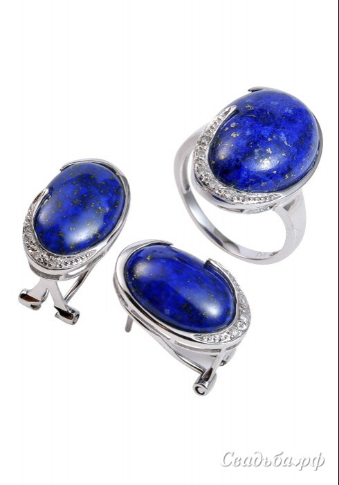 Комплект выполнен в белом золоте, с использованием лазурита и бриллиантов