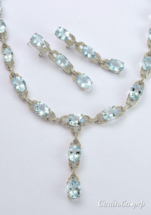 Комплект выполнен в белом золоте с топазами и бриллиантами