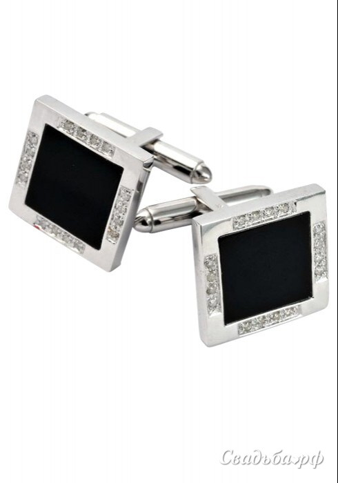 Запонки из белого золота с ониксом и бриллиантами