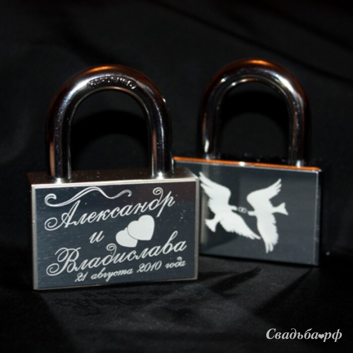 Замочек с двусторонней гравировкой, количество символов не ограничено. Срок от 2 рабочих дней.