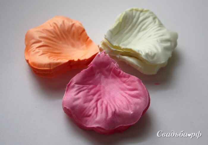 Искусственные лепестки роз в ассортименте: белые, розовые, красные, айвори, бело-розовые, оранжевые, персиковые, лимонные. Упаковка 100 шт., пресованные.
