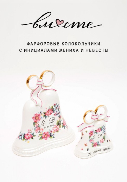 "Вместе" — это набор фарфоровых колокольчиков, изготовленных индивидуально ко дню вашей свадьбы на семейном производстве в Подмосковье.