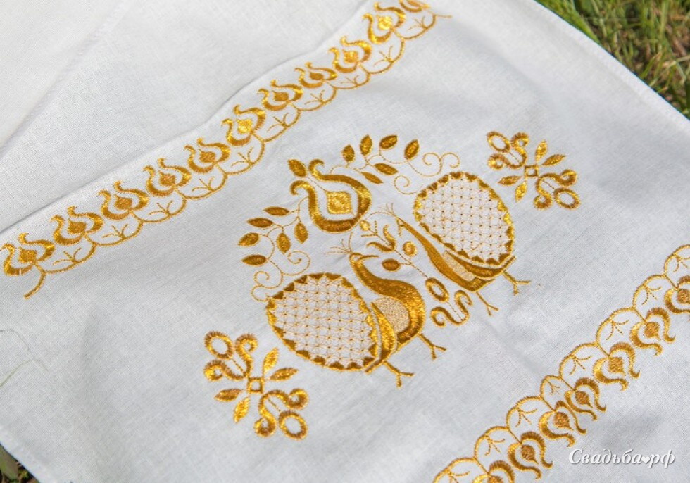 Свадебный рушник под каравай ,,Золотые петушки,,