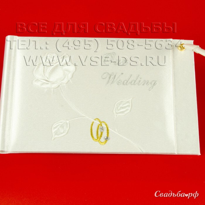Арт.117-034 Книга пожеланий ручной работы с ручкой «Роза», цвет: жемчужный