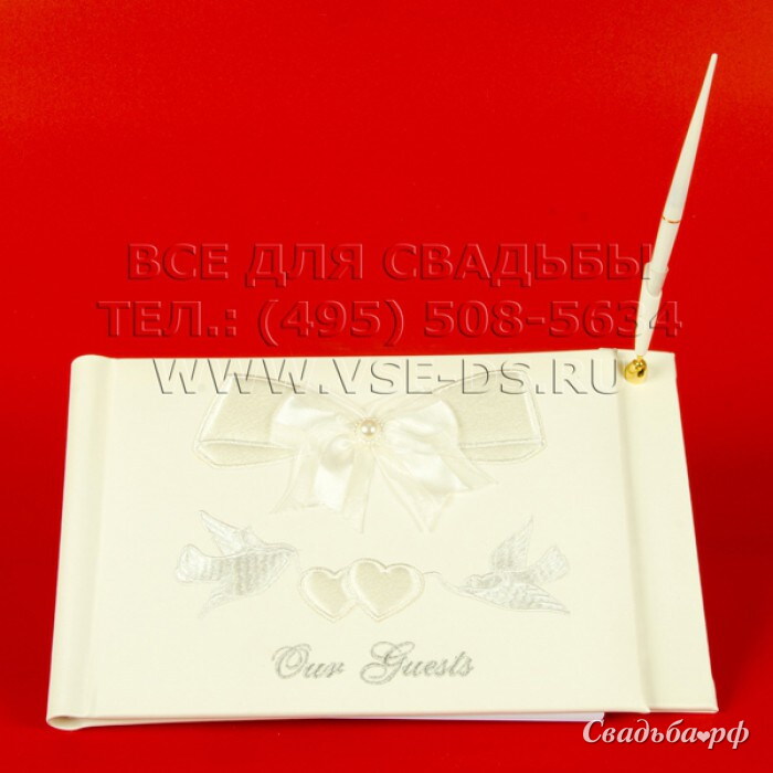 Арт.117-033 Книга пожеланий ручной работы с ручкой «Бант и голуби», цвет: айвори