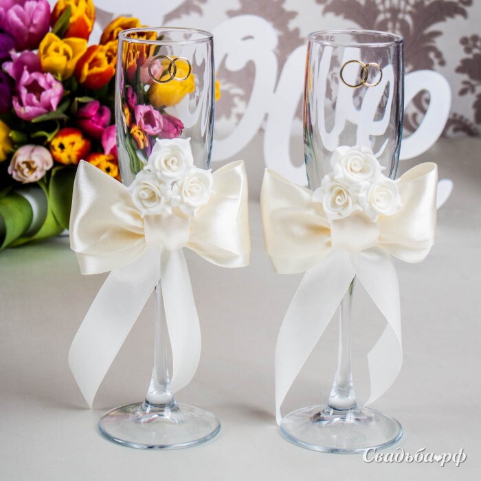 Данные бокалы представлены из коллекции свадебные аксессуары ручной работы «Романтика».