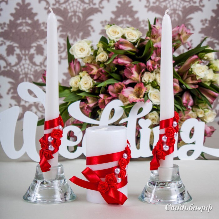 Комплект свечей для церемонии «Семейный очаг«, из серии свадебные аксессуары ручной работы »Красное и белое».