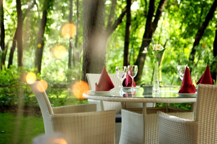 В ресторане при отеле отмечали свадьбу. Нам он понравился из-за своего расположения – в Серебряном бору. Территория красивая, особенно в теплое время года. И остались в отеле на ночь, сняли номер для себя и для некоторых наших гостей. Что могу сказать по банкету: еда вкусная, обслуживание на уровне. По номерам – все слабенько, если хотите роскоши и шика, то вам точно не сюда.