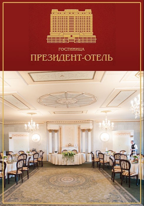 Гостиница «Президент-Отель» находится в самом центре Москвы. Это статусный отель с вполне демократичными ценами на проведение свадебного банкета.