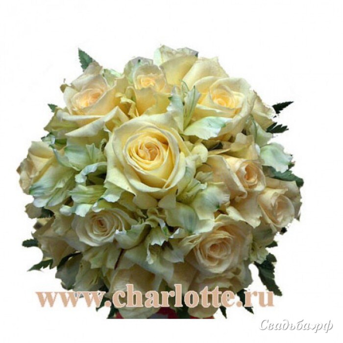 Букет невесты округлой формы из роз чайного цвета и белой альстромерии. На этот букет у нас специальная цена, так что цвет роз в этом букете не меняется.