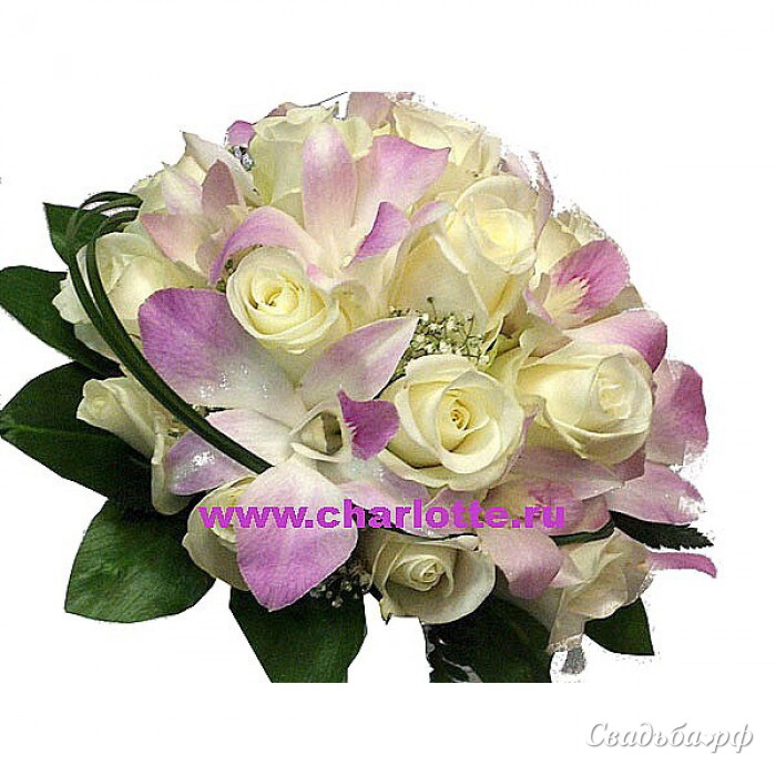 Букет невесты на портбукетнице из орхидей нежнорозового цвета и белых роз. По Вашему желанию цвет роз можно изменить, например, на розовый. Для этого свяжитесь с нашими операторами по телефону.