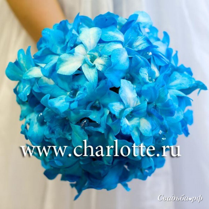 Букет невесты "Бирюза" из крашенной орхидеи дендробиум. Если Вы хотите изменить цветовую гамму букета звоните в наш салон цветов.