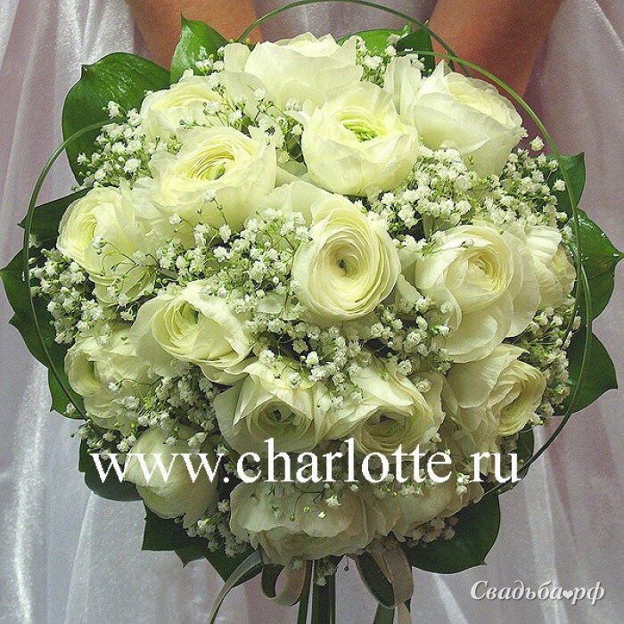 Букет невесты "Светлана". Совсем необычно смотрится букет невесты, если его сделали из пионовидных ранункулюсов и экзотического орнитогалума, с дополнением нежной и воздушной гипсофилы.