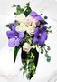 Асимметричный, фантазийный букет из кремовых и нежно-розовых роз, фиолетовой орхидеи Ванда, белых орхидей дендробиум, эвкалипта и аспидистры