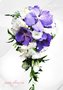 Ниспадающий, каплевидный букет из орхидей Ванда, лизиантуса, фрезий и рускуса итальянского.