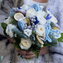 Букет на портбукетнице, по желанию возможно без нее. Состав: хризантема кустовая, роза Остин, эустома, бруния, ветка хвойная, зелень, гентиана, декор.