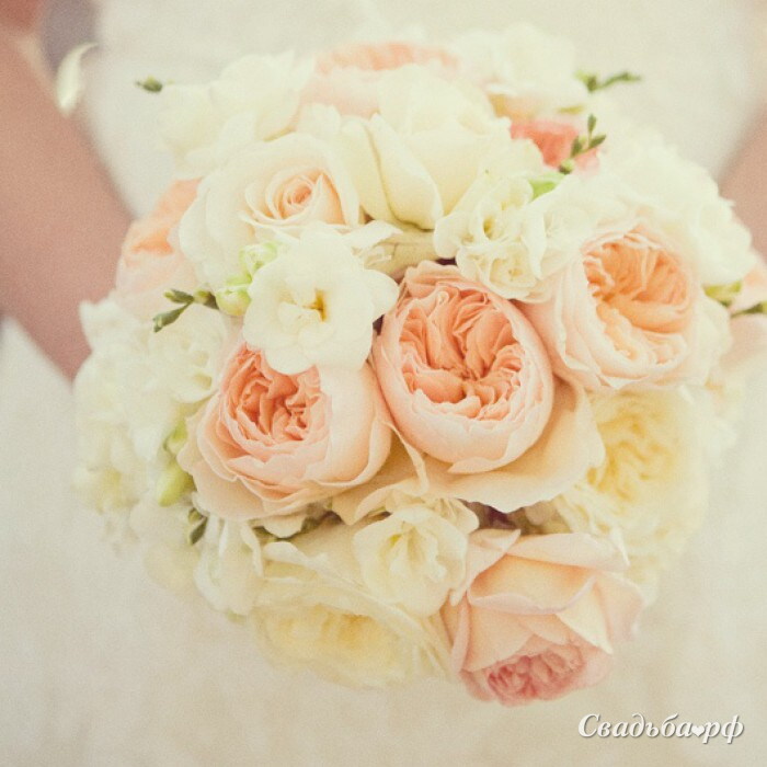 Модный в этом сезоне букет невесты, выполненный с использование пионовидной розы!