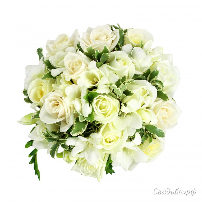 Белоснежный букет невесты из роз и ароматных фрезий. На собственной ножке.