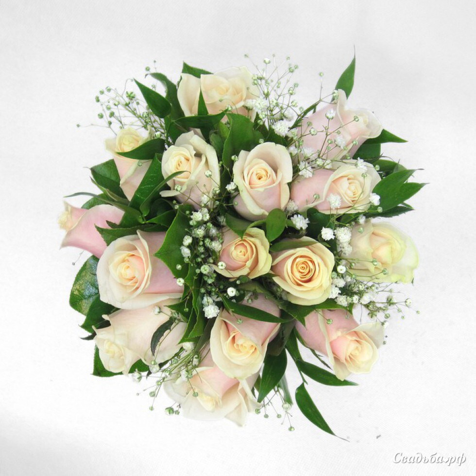 Скромный свадебный букет на собственной ножке. Бутоньерки входят в общую стоимость букета.
