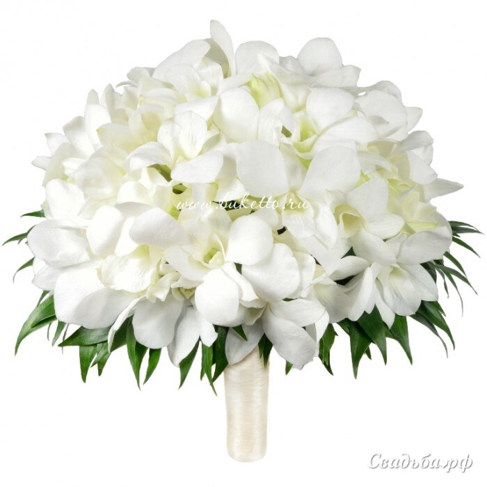 Утонченный, изящный букет из молочно-белых орхидей прекрасно дополнит любое платье и будет радовать вас продолжительное время.