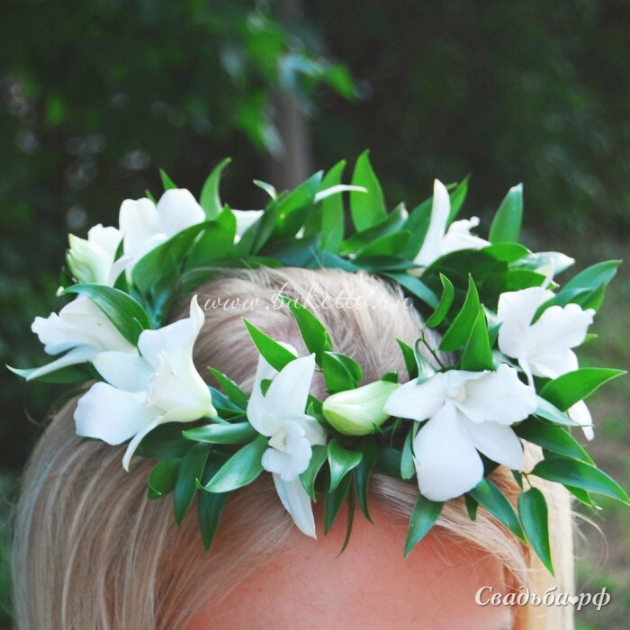 Венок из живых цветов к букету невесты "Альпийская свежесть".