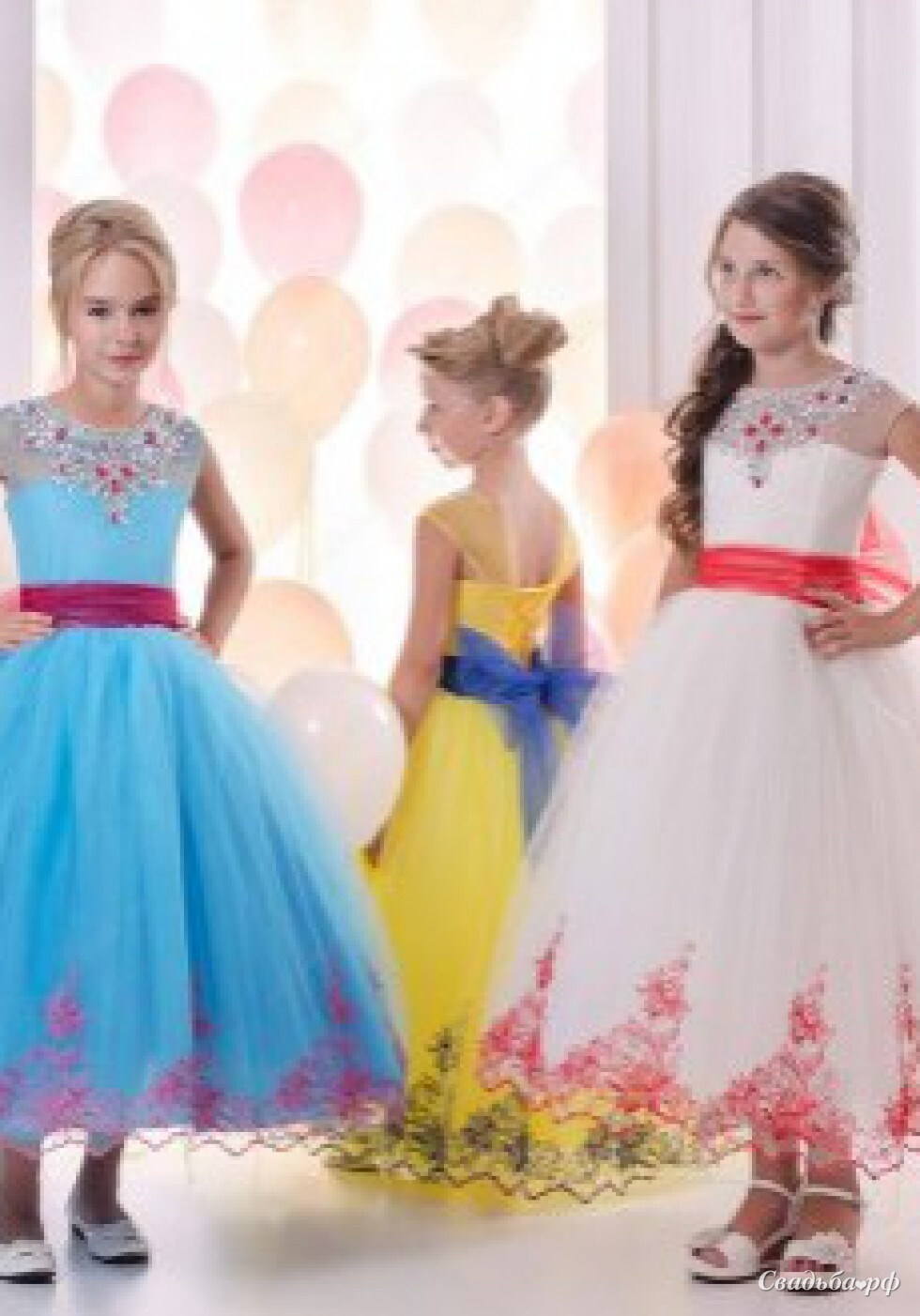Пышное длинное платье, украшено вышивкой и аппликацией