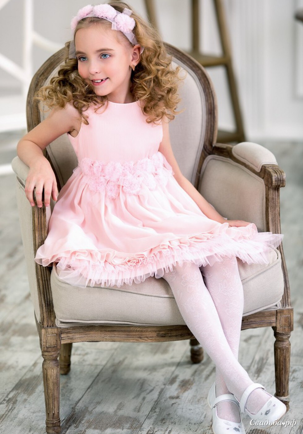 Нежное и воздушное детское платье для стильных малышек Вы можете приобрести в нашем интернет-магазине в двух цветах: чайная роза и мятный. Смелое решение фасона этого детского платья с лифом из тонкого шелка и воздушной юбкой, из под низа которой выглядывают игривые оборочки непременно понравится маленьким модницам.
