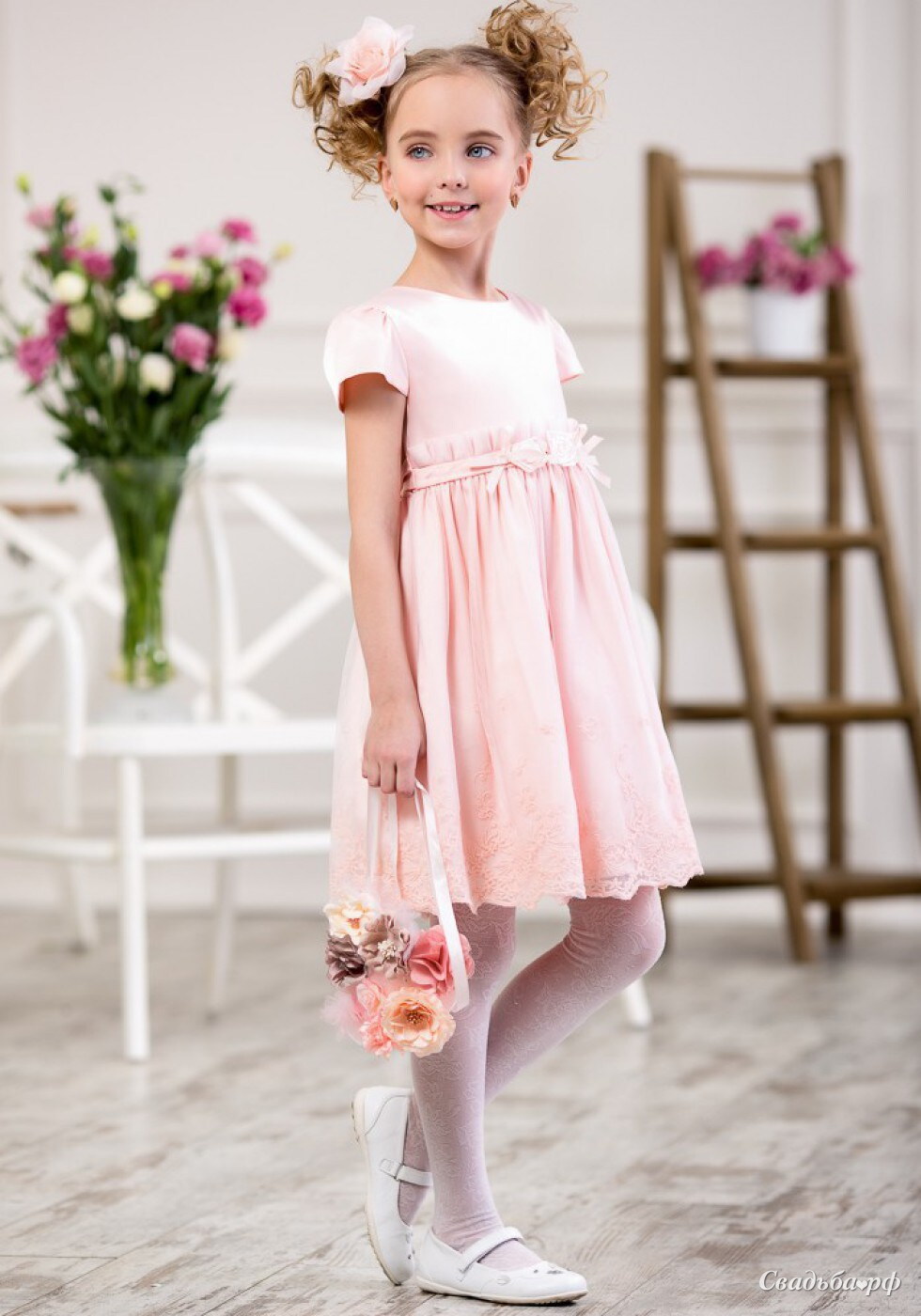 Это платье подойдет для выступлений на концертах, а также для повседневной носки. Эффектный орнамент и декоративная отделка из гипюра по подолу придают этому платью неповторимый стиль. Подходит в качестве торжественной одежды. Платье с лифом из атласной ткани цвета чайной розы, рукава фонарики, с круглым вырезом горловины.