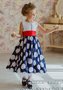 Детское платье, юбка длиной миди выполнена в большой белый горох
