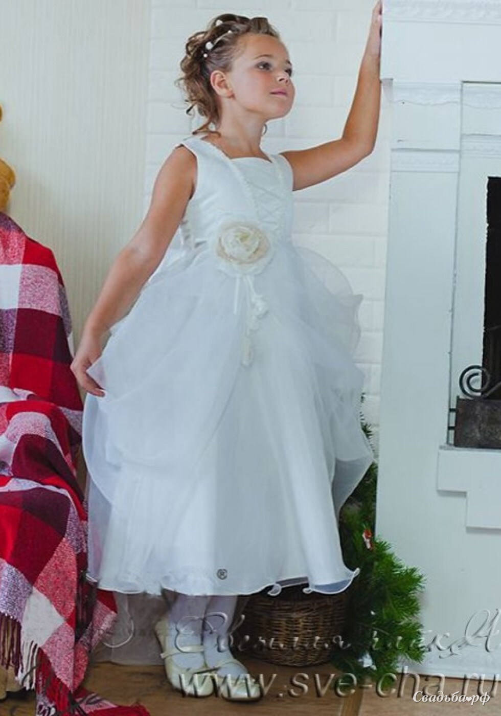 Детское красивое пышное платье. В таком наряде Ваша принцесса будет просто неотразима. Объемная юбка из нежной органзы, декоративный элемент в виде цветка на поясе не оставят Вашу девочку равнодушной.