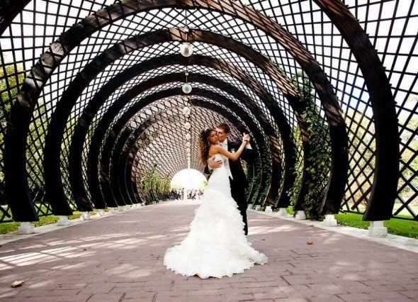 10. ВДНХ. На огромной территории комплекса красивые павильоны и восхитительные фонтаны, ухоженные клумбы и живописные пруды, часовня и модели самолетов и ракет, даже забавный дом-перевертыш и, наконец, Главный ботанический сад и парк «Останкино». Зимой же здесь работает самый большой каток России. Поэтому найдется прекрасный фон для фотосессий в любом стиле, на самый привередливый вкус и в любое время года. А в одном из павильонов в 2014 году был открыт Дворец бракосочетания на ВДНХ и теперь молодоженам можно весь день провести на обширной территории выставки: сделать красивую фотосессию, развлечь гостей катаниями на лодках, велосипедах, гироскутерах и других колесных средствах передвижения, устроив необычный свадебный кортеж, провести свадебный банкет в одном из многочисленных ресторанов, и даже обвенчаться в храме-часовне Святого Василия Великого.