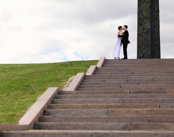 8. Поклонная гора. Здесь молодоженам есть где погулять. Пусть фотограф запечатлеет вас на фоне знаменитой Свадебной аллеи, церкви, галереи фонтанов, цветочных клумб, Триумфальной арки.