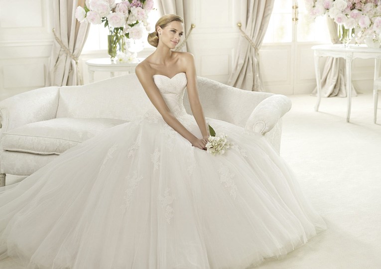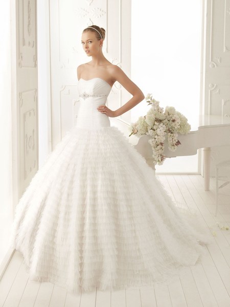 Вторая задача более очевидна — вам необходимо предстать перед женихом во время первой брачной ночи во всей красе. Гораздо проще, если у вас, опять-таки, классический фасон платья — с плотным верхом и пышным низом. В таком случае, вам беспокоиться не стоит — платье все скроет.
