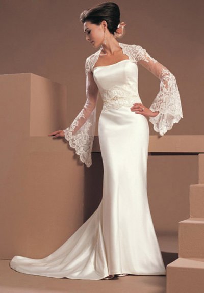 Четвертая модель. Свадебное платье с длинными рукавами или перчатками.