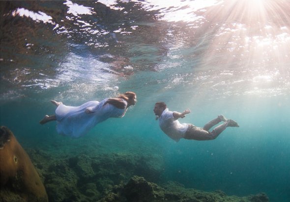 Там же в воде они обмениваются кольцами и, сняв маски, могут даже скрепить союз поцелуем. А морской вальс будет логичным завершением церемонии бракосочетания.