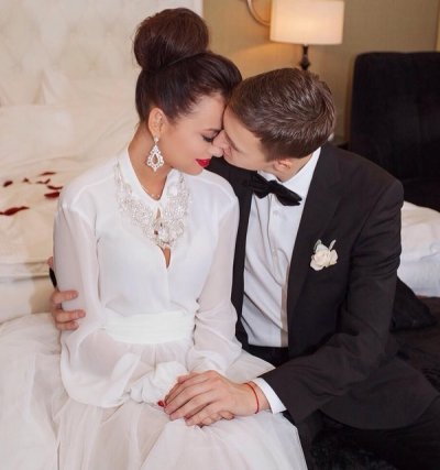 Да и жених не отставал. За праздник Кирилл сменил три костюма: на официальной церемонии он присутствовал в голубом, первый танец он танцевал в костюме темно-синего цвета, а вот в новых недавно опубликованных фото он красуется в классическом черном костюме с бабочкой.