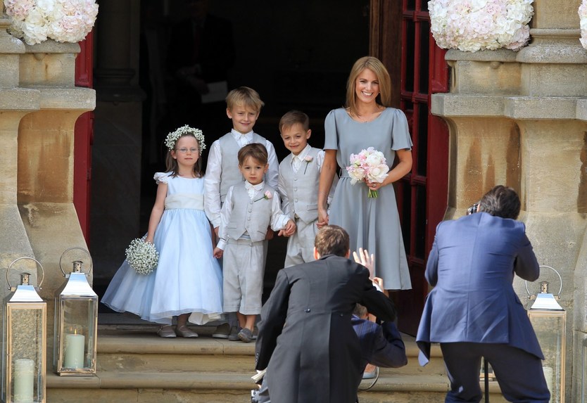 Подружки невесты, маленькие цветочницы, были одеты в наряды от детского дизайнера Ники Макфарлейн, заметим, она же делала платья подружек-цветочниц на свадьбе Кейт и Уильяма.