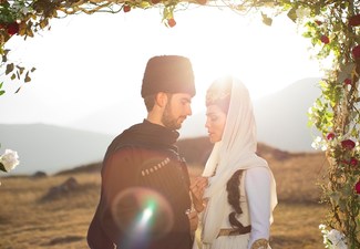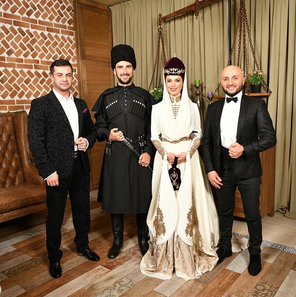Праздник был организован по всем традициям. Супруги были облачены в традиционные кавказские наряды, не обошлось без колоритных танцев и праздничного застолья.